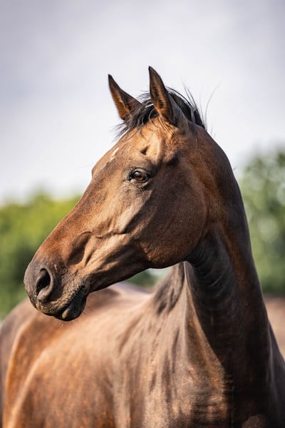 This mare is a real gem! She is gentle, sensitive and extremely clever, which makes her a wonderful partner for experienced riders. Her lightness of ride and joy of movement are remarkable - she jumps with ease both on and off the course. Her successes speak for themselves: she has won the suitability test and placed in the novice dressage horse class. She is currently slowly getting back into training and we are confident that she will soon be back in full form. Her gentle nature and willingness to learn make training a pleasure. A particular highlight are the three beautiful foals she has already given birth to. She has proven herself to be an excellent broodmare and could be a valuable asset to any breeding operation in the future. We are looking for a loving home for her where she will be appreciated either as a leisure horse or as a broodmare. If you are looking for an intelligent, talented and charming mare who can give you many wonderful moments, please contact us!