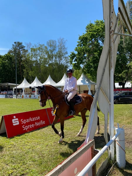 In vendita una splendida amazzone di 11 anni, di colore baio, con genealogia Van Gogh x Burggraf, che ha ottenuto successi sia a livello nazionale che internazionale nel salto ostacoli. Ha vinto classi S*, piazzata in S**, ed è stata molto competitiva a livello internazionale. Questa amazzone possiede molto talento, tecnica e ambizione – desidera sempre dare il massimo, lavora con impegno ed è molto attenta. Anche giovani amazzoni sono riuscite a farla saltare con successo fino a 1,25 m, a testimonianza del suo grande potenziale e della sua voglia di imparare. A livello di dressage è piacevole da cavalcare, reattiva e al tempo stesso sensibile, consentendo di controllare bene i suoi movimenti e di sfruttarli in modo armonioso. Nel rapporto quotidiano, la amazzone si distingue per la sua eccezionale dolcezza e affidabilità. Va da sola al campo, rimane tranquilla dal ferraturista, ed è completamente rilassata durante i trasporti e le competizioni. È assolutamente coraggiosa, molto calma e dotata di un carattere tranquillo e fiducioso. Allo stesso tempo, nel salto dimostra il giusto spirito, motivazione e volontà di dare il massimo – proprio queste qualità rendono il salto emozionante e di successo. Particolarmente nel rapporto con i bambini, si mostra molto affettuosa ed empatica, rendendola anche una compagna ideale per i giovani cavalieri. Combina serenità quotidiana con il temperamento adatto alla disciplina sportiva, rendendo piacevoli sia gli allenamenti che le gare. Questa amazzone è la partner perfetta per i cavaliere ambiziosi che cercano un animale sportivo, performante, versatile, affidabile e dolce nel rapporto quotidiano. Offre un enorme potenziale di crescita, è desiderosa di imparare e motivata, rendendo ogni collaborazione, sia in gara che nella vita di tutti i giorni, estremamente gratificante.