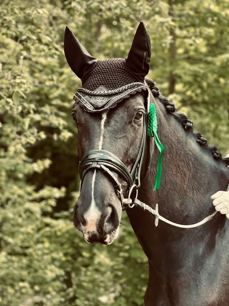 Zum Verkauf wegen Zeitmangel steht eine beeindruckende Rappstute (geb. 2014) mit einem Stockmaß von ca. 1,80 m, die durch ihre außergewöhnliche Nervenstärke, Rittigkeit und Vielseitigkeit überzeugt. Die Stute ist ein absolutes Verlasspferd und sowohl im täglichen Umgang als auch unter dem Sattel äußerst angenehm. Sie ist platziert in der A-Dressur, verfügt über hervorragende Grundgangarten und zeigt sich stets motiviert und leistungsbereit. Im Gelände ist sie sehr sicher, auch alleine und unerschrocken unterwegs. Selbst große Sankt-Martins-Umzüge meistert sie gelassen und souverän. Sie ist verkehrssicher, mutig und jederzeit kontrollierbar. Im Umgang ist sie: • sehr lieb zu Kindern • verträglich mit Hunden • verladefromm • schmiedefromm • insgesamt unkompliziert und zuverlässig Abstammung: • Vater: De Niro • Muttervater: Tango Ein ideales Pferd für ambitionierte Freizeitreiter:innen, Dressurreiter:innen oder als zuverlässiger Partner für Familie, Gelände und Alltag. Weitere Informationen, Bilder und Videos gerne auf Anfrage. Nur in fördernde Hände abzugeben. Kein Notverkauf.