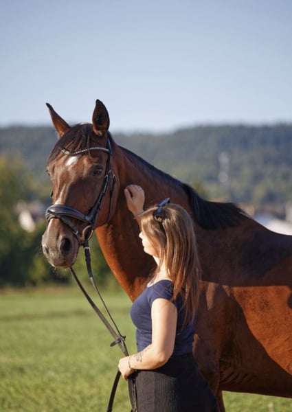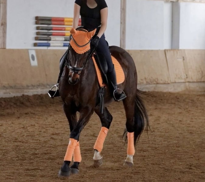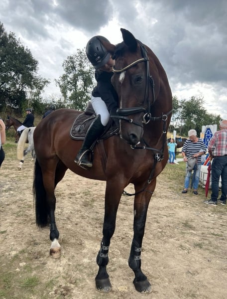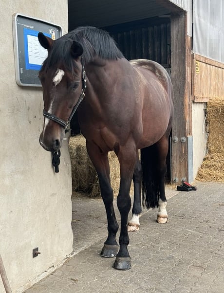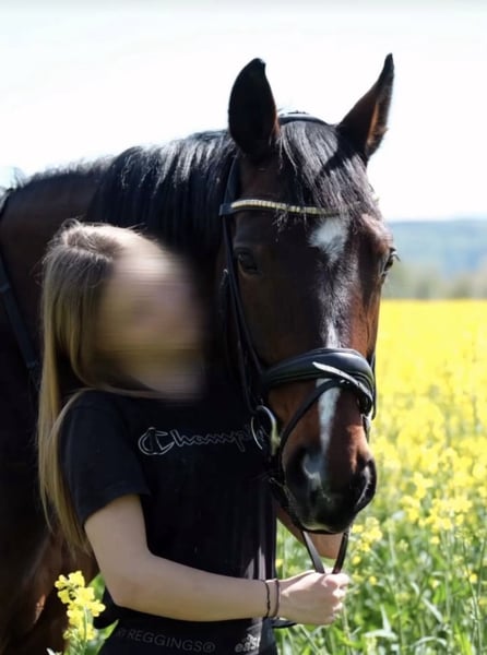 We are looking for a new home for our 17-year-old Dulana, who is perfect for an experienced leisure rider, especially one who enjoys riding in the countryside. She loves being out and about over natural terrain, whether alone or in a group. Dulana is full of "go" and is therefore not a beginner’s horse, but she can be ridden by a confident beginner who has patience and calmness. In daily dressage work, Dulana has a solid foundation, but she still needs targeted training and some patience, as she finds it difficult to accept the contact. For this reason, we have decided to rehome her as a leisure horse into the best possible hands. Currently, she is in a herd of mares during the day, where she is very social and tends to be lower in the hierarchy. She is an absolute sweetheart in handling. We want to emphasize that the price is negotiable, as we are looking for a loving home for our heart horse. We seek someone who loves and understands her and can offer her a good, caring environment. Her well-being is our top priority. Height: 16.1 hh For more information, please contact us at 0172 9463606.