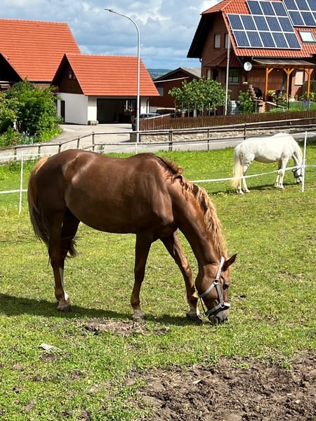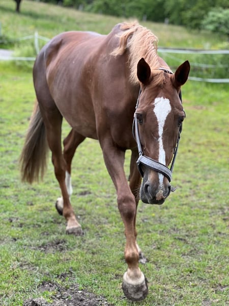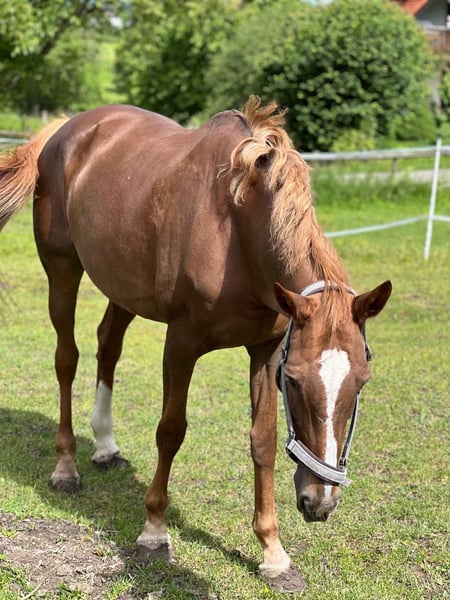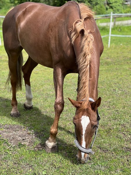Cinerma ist eine charmante 17-jährige KWPN Stute, die durch ihre tolle Abstammung vom Hengst Quidam de Revel, beeindruckt. Mit einer Größe von 1,66 m und ihrem freundlichen Wesen, ist sie der ideale Freizeitpartner, jedoch eher für etwas erfahrenere Reiter. Im Umgang mit Kinder besticht sie durch ihre liebevolle und umsichtige Art. Auf Turnieren hat sie sich im Springen bis zur Klasse L platziert und bringt daher wertvolle Erfahrung mit. Die letzten zwei Jahre war Cinerma im Schulbetrieb aktiv und hat diese Aufgabe mit viel Geduld und großer Zuverlässigkeit erfüllt. Dennoch sehnt sie sich nach einer festen Bezugsperson, da sie nicht für den ständigen Reiterwechsel geeignet ist. Sie wünscht sich jemanden, mit dem sie noch viele schöne Stunden verbringen darf, ohne das noch große Ambitionen im Springsport im Vordergrund stehen. Kleine Sprünge oder lange Ausritte im Gelände bereiten ihr jedoch weiterhin große Freude. Sie freut sich über jede Form der Bewegung und schätzt es sehr wenn man sich mit ihr beschäftigt. Hat sie dich einmal in ihr Herz geschlossen, wird sie dir treu zur Seite stehen. Ihr Zubehör ist im Preis enthalten. Wenn du Interesse an dieser treuen und liebevollen Stute hast, zögere nicht, dich zu melden und sie bei einem Probereiten persönlich kennenzulernen.