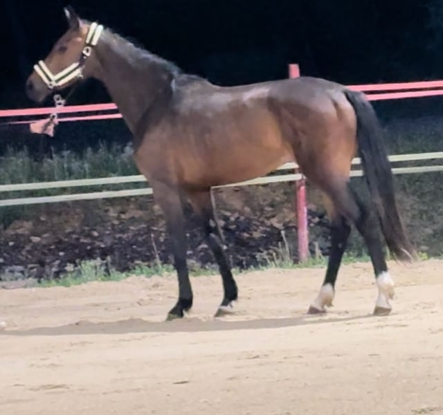Schöne Mutterlinie Onkel und Bruder im Grand Prix Dressur Auch im Springen bis 140 cm erfolgreich Grüne, aber freundliche junge Stute Sie ist 1,65 m groß