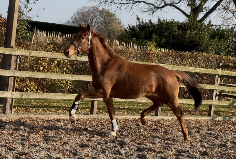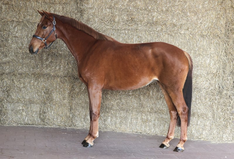 Yegua joven y muy talentosa, procedente de una línea materna fantástica. Sin duda apta tanto para la competición como para la cría en el futuro. Modelo atractivo con mucha presencia. Se mueve con mucha técnica y una pata trasera muy fuerte. ¡Convincente en las tres fases del movimiento! La yegua ha estado en el campo desde hace poco tiempo, por lo que no está montada ni en entrenamiento. Tiene un carácter muy amable y se maneja con facilidad a diario en mano, en la pasera, paddock y en la zona de lavado. Recientemente ha sido examinada radiológicamente sin observaciones. Puedes consultar su pedigrí completo y línea materna en el siguiente enlace: https://www.horsetelex.com/horses/pedigree/2464340/sizet-vdv