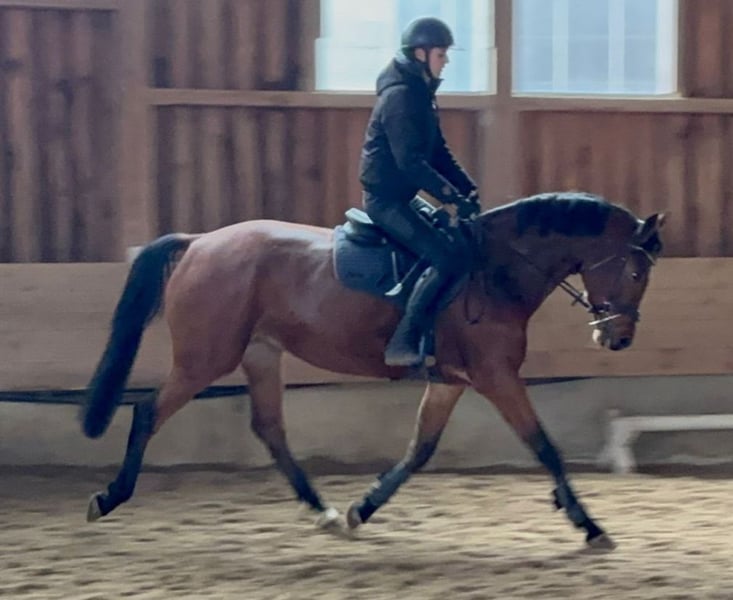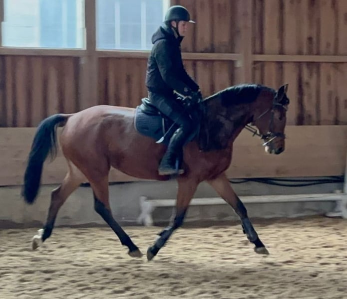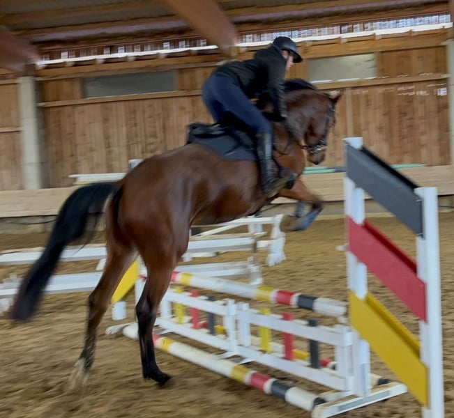 Fey ist eine bildhübsche noch 3-j. Stute mit sehr viel Qualität. Sie zeigt enormes Potential beim Freispringen und meistert gerade die ersten kleinen Sprünge mit viel Übersicht unter dem Sattel was grosses Erahnen lässt. Erst kurz unter dem Sattel lernt sie täglich dazu und zeigt sich hier total unkompliziert. Nur in fördernde Hände.