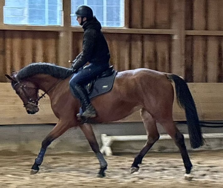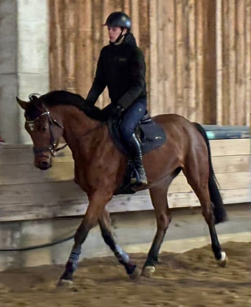 Fey is a stunning 3-year-old mare with exceptional quality. She demonstrates tremendous potential in free jumping and is currently mastering her first small jumps with great confidence and composure under saddle, hinting at a bright future. She is still learning daily under saddle and proves to be very uncomplicated in this process. She is best suited for experienced and supportive hands.