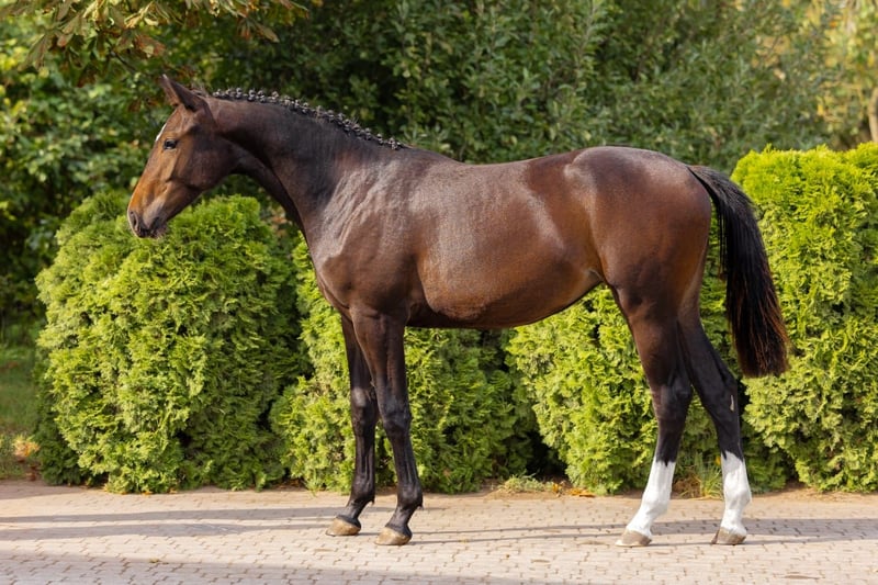 Excellent mare suitable for show jumping competitions or breeding. Very good temperament. Well-socialized with people and accustomed to grooming procedures. Vaccinated, dewormed, and shod by the farrier. Handles well in hand. Her dam produced two approved stallions.