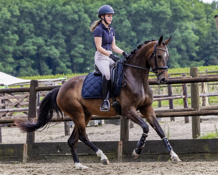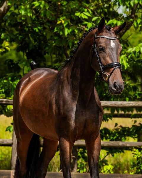 Wunderschöne, vierjährige KWPN-Stute mit hervorragenden Papieren: - Stute - Ca. 1,60 m groß - Dante U.S. x Lancelot x Ramiro Z - Zadelbar / Niveau Z - Keine Mängel - Röntgenologisch vollständig freigegeben, inklusive Hals und Rücken ohne Bemerkungen - Geboren am 26.06.2021 - Dunkelbraun Rosaline's Utopia ist eine äußerst liebenswerte und hübsche KWPN-Stute mit großem Potenzial für Sport und Zucht. Sie verfügt über drei sehr gute und korrekt bewegte Gänge. Im Sommer 2024 wurde sie zügig zadelbar gemacht, wobei sie sich sehr brav zeigte. Außerdem wurde sie in dieser Zeit mehrfach an der Straße und im Wald geführt. Danach ging sie in Mutterschaftsurlaub. In diesem Jahr brachte sie ein wunderschönes, großes Stutfohlen von Blue Hors Zackerey zur Welt. Sie war leicht tragend beim ersten Versuch und eine sehr liebevolle Mutter. Nach dem Absetzen im September 2025 haben wir Rosaline behutsam wieder aufgebaut. Wir begannen mit Longieren, um sie wieder zu stärken, und sie wurde inzwischen auch mehrmals wieder unter dem Sattel geritten. Sie nimmt das wieder sehr brav an, ist jedoch eine sensible Stute und noch etwas grün unter dem Sattel, weshalb sie (noch) nicht für Anfänger geeignet ist. Rosaline ist im Umgang brav, bei der Schmiedin, im Anhänger etc. Sie wurde kürzlich entwurmt, ihre Impfungen sind aktuell und sie war auch beim Tierarzt für die Zahnbehandlung. Ihr Vater ist kein Geringerer als Dante U.S.! Dante U.S. ist international erfolgreich auf Grand Prix-Niveau unterwegs und stand ebenfalls auf der Longlist für die Olympischen Spiele 2024. Die Mutter von Rosaline ist Utopia v. Lancelot. Sie ist auch die direkte Mutter von Goldy's Utopia, die bereits auf ZZ-Licht-Niveau erfolgreich ist. In der Mutterlinie finden sich zudem mehrere Grand Prix-Pferde, z. B. Bosley B v. Diamond Hit, der international auf Grand Prix-Niveau unter Jonna Schelstraete reitet. Außerdem sind in der Mutterlinie auch Springpferde vertreten, was Rosaline für die Zucht besonders interessant macht. Insgesamt eine sehr schöne, vielseitige Stute mit hoher Qualität und großem Potenzial für Sport und Zucht. Bei Interesse gerne eine Nachricht oder einen Anruf/WhatsApp unter +31 6 120900029. Bitte nach 17:00 Uhr anrufen. Ein Tausch, Pony oder Pferd, ist eventuell auch möglich.