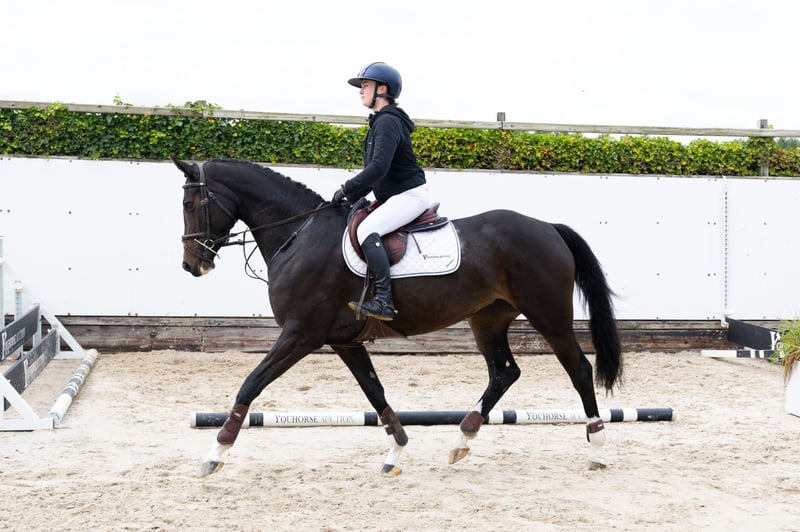 The four-year-old Rinjani is a warmblood that already shows great rideability. She has a big heart and enjoys jumping. Her sire, Modesto, was a long-standing key member of the French team with Jean-Marc Nicolas. He is known as the sire of Bugatti (1.60m Grand Prix) and Igor VL (1.55m Grand Prix). Her dam, Fioladora-W, descends from Carosso VDL (1.40m jumping). Her granddam, Ladora (Grannus x Ariban xx), earned keur and performance predicates, notably producing three offspring at the 1.40m level.