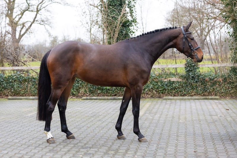 Last year, Sofie van Berghem already made an impression with her jumping qualities at the KWPN mare inspection, where she was awarded the ster predicate with 80 points for free jumping. Sire Opium JW van de Moerhoeve competes successfully at 1.50m-level with Lillie Keenan and represents the strong Van ’t Roosakker line. His oldest offspring are beginning their international careers at the age of seven, and this Sofie van Berghem also has a bright future ahead of her. Her dam Nienke is a half-sister to the international 1.40m-level competing Isabel (s.Captain Cooper) ridden by Tom Schellekens. The same rider competed at 1.55m-level with Casander (s.Lord Z), who was bred from this direct damline as well.