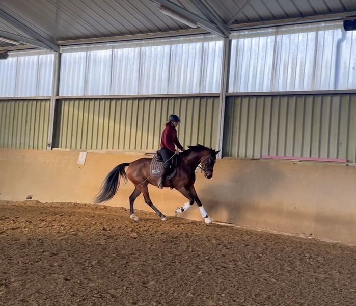 ✨ Talented Dressage Mare ✨ For sale is the 4-year-old dressage warmblood mare Sienna – a true promising prospect for upper-level dressage! Sienna impresses not only with her excellent pedigree (Benicio x Tuschinski), but especially with her outstanding basic gaits. She demonstrates a lot of rhythm, elasticity, and a particularly expressive movement sequence – ideal qualities for a successful future in the dressage arena. Under saddle, she is very rideable, sensitive to the aids, and always motivated. She has been gently backed and trained age-appropriately. She shows a great work ethic and always aims to please her rider. In daily handling, Sienna is an absolute sweetheart: ✔ straightforward ✔ human-oriented ✔ well-behaved during handling She already has experience with ground work, which further emphasizes her solid foundational training. More information gladly available via WhatsApp or by phone at +49 176 34635813.