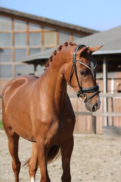 This typful mare was able to win her performance test in the Netherlands with dream scores. She has been under saddle for a few weeks now and absolutely lives up to her promises. A real star for the arena. A current radiographic examination with no findings is available. For further information, please contact via WhatsApp or by phone.