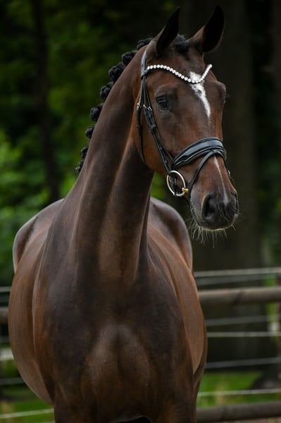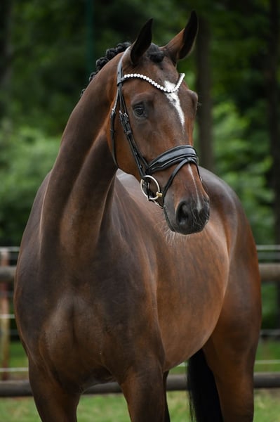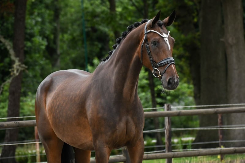 Diese 4-jährige Stute von Mister Masarati x Davino (Sport) befindet sich noch im Besitz des Züchters. Diese Stute hat selbst das Sterprädikat und ist, wie Sie auf den Fotos sehen können, eine sehr schöne Stute. Sie hat gute Füße, schöne trockene Beine und ein gutes Modell. Sie ist seit einigen Monaten unter dem Sattel und lässt sich gut bearbeiten. Sie hat eine leichte Anlehnung, ist nicht schreckhaft und vermittelt dem Reiter ein sehr angenehmes Gefühl. Sie ist freundlich, menschenbezogen und unkompliziert im Umgang. Sie hat keine (Stall-)Mängel und wurde kürzlich vollständig genehmigt. Für weitere Informationen bitte einfach anrufen!