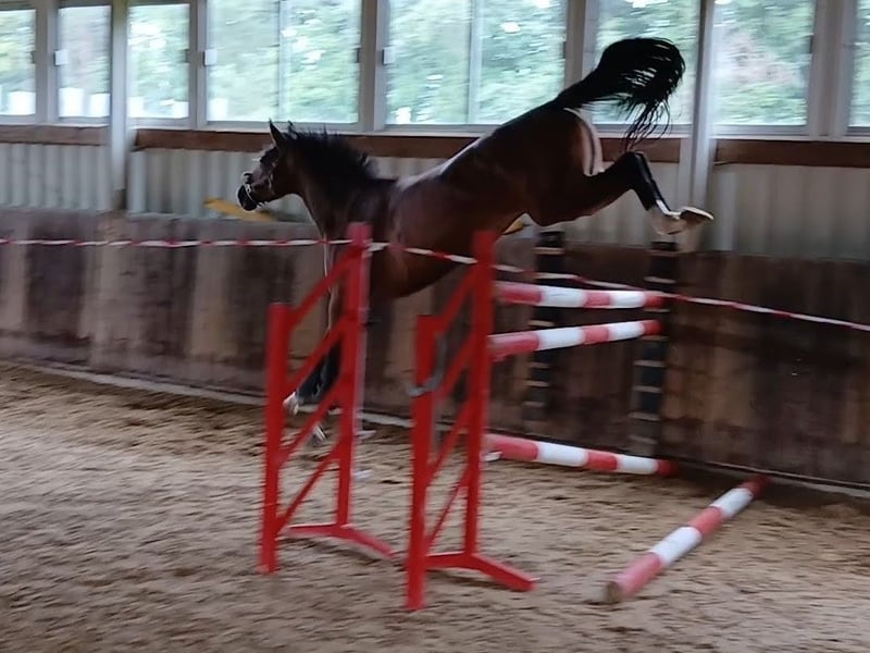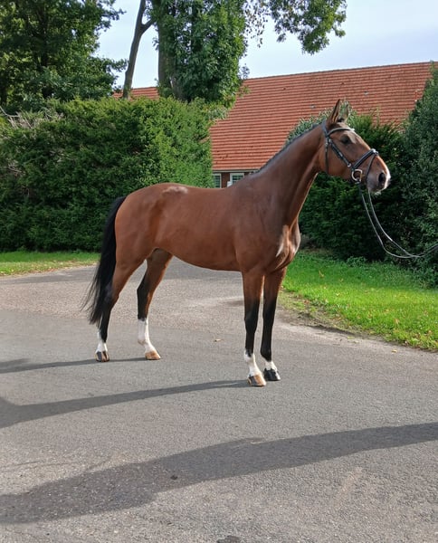 Typvolle 4jähr. braune KWPN Stute von Checkter x Nassau. Sie hat ein Stockmaß von 1,69m. Die Stute wurde schonend ausgebildet und angeritten. Durch ihren guten Charakter ist sie sehr gut händelbar und brav im Umgang. Sie ist bei der Arbeit immer fleißig, ehrgeizig und überzeugt mit ihrem Vermögen und Rittigkeit. Die Stute kennt Halle, Außenplatz und Gelände. Sie ist mit sechs Monaten zu uns gekommen und mit einer selbstgezogenen Stute aufgewachsen. Weitere Infos gerne telefonisch unter der Nr.: 01728040169