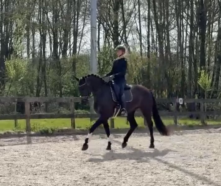 Sind Sie auf der Suche nach einem echten Blickfang für die Zukunft? Mit Stolz bieten wir diese äußerst talentierte, vierjährige Schwarzbraune Dressur-Stute an. Mit ihrer beeindruckenden Ausstrahlung, starken Abstammung und einer Stockmaß von ca. 1,70 m besitzt sie alles, um zu einem erfolgreichen Sportpferd heranzuwachsen. Wichtigste Merkmale: - Alter: 4 Jahre (geboren 2022) - Geschlecht: Stute - Farbe: Schwarz - Stockmaß: ca. 1,70 m - Zuchtbuch: KWPN - Abstammung: Lowlands x Desperado Abstammung & Potenzial Der Vater ist der bekannte Hengst Lowlands, der für seine fantastische Einstellung und drei überdurchschnittliche Grundgangarten hoch gelobt wird. Von der Mutterseite stammt der Grand-Prix-Hengst Desperado, was für zusätzliches „Go“, Flexibilität und einen starken Hinterbeineinsatz sorgt. Die Stute hat eine moderne, ansprechende Konstitution und bewegt sich mit viel Leichtigkeit, Balance und Qualität. Charakter & Status Sie wurde im letzten Jahr eingeritten und ist nach einer kurzen Pause seit etwa zwei Monaten wieder unter dem Sattel. Sie nimmt dies angenehm und arbeitswillig auf, doch aufgrund ihres jungen Alters und begrenzter Erfahrung ist sie (noch) nicht für den Anfänger geeignet. Im Umgang ist sie ehrlich und sozial gegenüber anderen Pferden. Außerdem ist sie leicht beim Hufschmied und vertraut mit Transport auf dem Anhänger. Gesundheit - Röntgenologisch sporttauglich (inklusive Hals- und Rückenaufnahmen) - Frei von (Hallen-)Gebrechen - Nachuntersuchung auf Kosten des Käufers möglich Preis Auf Anfrage (höhere Preisklasse) Kontakt Bei ernsthaftem Interesse können Sie sich für weitere Informationen, Fotos oder Videos gerne melden. Name: Esveld Standort: Utrecht Telefon: 06-21532617