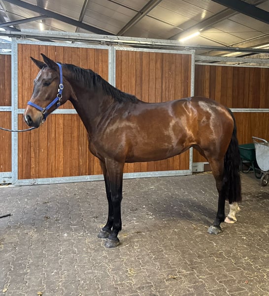 For sale is a promising KWPN mare, born in 2021. With her elegant dark bay coat and a height of 16.1 hands, she combines an athletic appearance with great potential. This well-ridden show jumping horse has a solid basic training and already shows promising early talent in jumping. She is attentive, eager to learn, and possesses the typical quality of a KWPN, making her an ideal foundation for an ambitious competition rider or breeding enthusiast. The mare is healthy, well cared for, and regularly veterinary checked. Her friendly nature and willingness to learn set her apart. Due to her promising pedigree and good temperament, she is well-suited for both sport and breeding. Please feel free to contact me for further questions or if you are interested. A personal introduction is always possible.