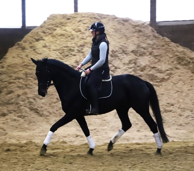 Verkaufe elegante KWPN-Stute – Perfekt für die Dressur! Angeritten !!! Diese wunderschöne Rappstute wurde im Jahr 2021 geboren und beeindruckt durch ihre ansprechende Erscheinung und ihr vielversprechendes Potenzial. Mit einem Stockmaß von 158 cm bietet sie die ideale Größe für ambitionierte Reiterinnen und Reiter, die auf der Suche nach einer talentierten Dressurpartnerin sind. Sie ist eine typische KWPN mit hervorragender Grundqualität, Elastizität und Bewegungsstärke. Ihre aufgeschlossene und freundliche Art macht sie zu einer angenehmen Begleiterin im Alltag und im Training. Diese junge Dressur-Stute ist bereit, ihre Karriere unterm Sattel zu starten und begeistert durch ihre Lernbereitschaft und ihren Willen. Sie eignet sich sowohl für den ambitionierten Amateur als auch für den professionellen Turnierreiter. Bei Interesse oder für weitere Informationen stehe ich gerne zur Verfügung. Vereinbaren Sie einen Termin und überzeugen Sie sich selbst von diesem vielversprechenden Pferd! Leider koppt die Stute hat aber keine Probleme aus diesen Grund unter wehrt . weitere Infos 01722734811 Vater -Jayson-Jazz Mutter -San Brentano - Sandro Hit