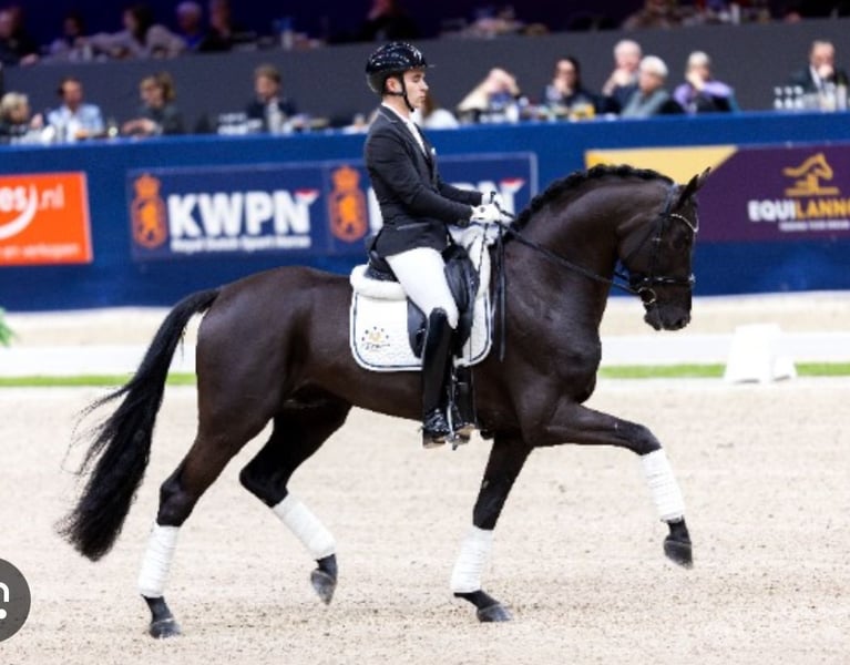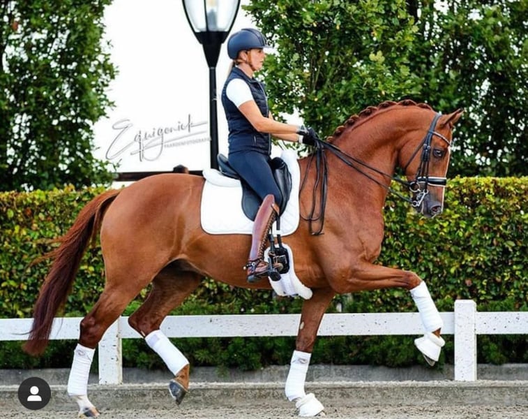 Diese wunderschöne 5-jährige Stute sucht ein Zuhause mit 5 Sternen. Sie ist tragend vom Superstar Secret USB, voraussichtlicher Fohltag ist der 16.03.2026 – das ist bald! Sie ist eine wundervolle Begleiterin, leicht zu reiten und besitzt ein großartiges Temperament. Sie ist unkompliziert in allem. Aus einer hervorragenden Mutterlinie mit vielen Sportpferden auf PSG-Niveau oder höher. Koning x Vivaldi x Metall Derzeit wird sie aufgrund ihrer Trächtigkeit nicht mehr geritten. €13.000, Standort Süd-Holland