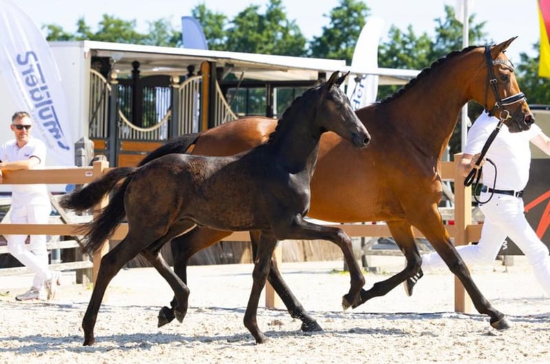 This stunning 5-year-old mare is seeking a 5-star home. She is pregnant with the superstar Secret USB, due around March 16, 2026 — so she’s already in foal! She is a pleasure to have around, easy to ride, and has the best temperament, making her very straightforward in all situations. Her damline is excellent, producing many sport horses at PSG level or higher. Sired by Koning out of a Vivaldi x Metall mare. Currently, we are not riding her due to her pregnancy. Price: €13,000 Located south of the Netherlands.