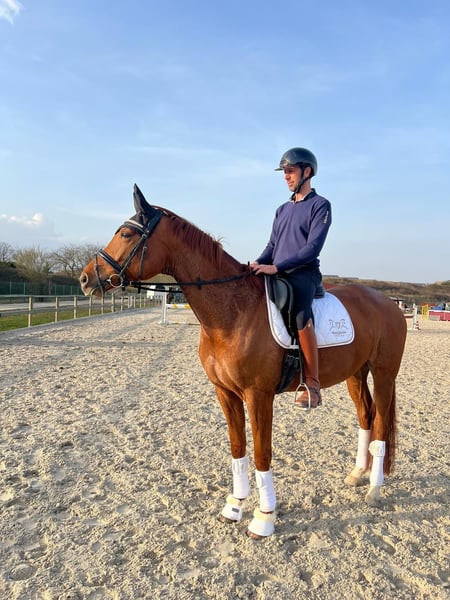Ranamiek – Eine Stute voller Talent und Charme Abstammung: Fynch Hatton x Chagall Größe: ca. 1.68 m (noch im Wachstum) Alter: 5 Jahre Wir freuen uns, Ihnen Ranamiek vorzustellen – eine außergewöhnliche, hochtalentierte 5-jährige KWPN-Stute, die mit ihrer Eleganz, ihrem Potenzial und ihrer fantastischen Rittigkeit überzeugt. Das macht Ranamiek besonders: Bewegungsqualität: Mit drei herausragenden Grundgangarten und einem harmonischen Bewegungsablauf ist Ranamiek ein echter Blickfang – sei es auf dem Platz oder später im Viereck. Charakter: Sie zeigt sich stets freundlich, nervenstark und kooperativ – ideal für Reiterinnen und Reiter, die ein Pferd mit viel Herz suchen. Einsatzbereit: Ranamiek wurde kürzlich vollständig für den Sport durchgecheckt (inkl. Rücken und Hals) und ist bereit, ihre Karriere zu starten. Reitpferdeprüfung gewonnen. Standort: Ranamiek steht in Richwiller (Frankreich - nur 35 Minuten der Schweizer Grenze) zur Besichtigung bereit. Haben Sie Interesse? Für weitere Informationen, Videos oder eine Terminvereinbarung kontaktieren Sie uns gerne per WhatsApp: +41 79 759 29 48