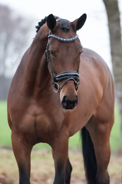 Merrie Despacito x benneton dream Circa 173 5 jaar Deze zeer getalenteerde merrie heeft een fijne manier van bewegen en een zeer goed achterbeen . Paard met bovengemiddeld veel kwaliteit en super braaf in de omgang en onder het zadel. Paard is nuchter en totaal niet kijkerig onder het zadel. Geen merrie streken en lief en vriendelijk op stal. Ze meet circa 174 en staat recht op haar voeten. Ze is al mee geweest op vreemd terrein en dit doet ze zeer braaf. Ook is ze braaf in het bos Zeer fijn paard voor iemand die wilt schitteren in de wedstrijd ring! Paard is volledig goedgekeurd voor de sport inclusief benen rug en hals