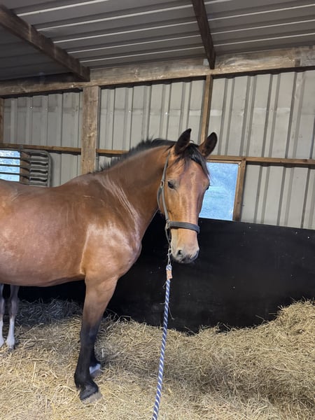 **Te koop: KWPN merrie (2020) – Bruin, 165 cm** Naam: Pascha Leeftijd: 5 Maat ca. 165 Ik verkoop haar omdat ik mij meer ga richten op de spring sport en dit is niet voor haar weggelegd. Pascha is ingeënt, ontwormt heeft een stamboek en word netje bijgehouden door hoefsmid Ze is braaf in omgang maar heeft wel een ervaren ruiter nodig die consequent en duidelijk is. Ze is nu ong. 2 jaar onder het zadel maar door veulen tussendoor, mag er nog wat meer bevestigd worden. Veder onder het zadel een lief paard maar niet voor de beginnende ruiter. Het longeer werk kent ze ook Ze heeft 1 veulen gehad een is een goede beschermende moeder. Ze heeft een pittig karakter en weet goed wat ze wil. In een groep kan ze ook dominant zijn. Veder geen stalgebreken, maar word liever niet alleen achtergelaten. Ze heeft een iets bokvoetje maar door dit netjes bij te houden hoeft dit geen probleem te zijn. Vedere vragen? Neem gerust contact op. 06-57933726