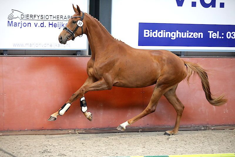 Questa femmina ha un carattere molto affabile e trasmette una sensazione di leggerezza durante la monta. Vanta tre ottimi andamenti e ha ottenuto un punteggio elevato per la flessibilità al KWPN. Ha avuto un puledro, motivo per cui è stata messa sotto sella un po' più tardi. Tuttavia, attualmente è stata portata a livello L2 e ha già partecipato a competizioni. Una femmina molto adatta per progredire ulteriormente o per le gare di giovani cavalli. Adatta anche per la riproduzione. La madre compete a livello Intermediate I ed ha già prodotto due stalloni approvati. La madre, la nonna e la bisnonna sono state premiate come preferenti al KWPN. Su richiesta e in caso di serio interesse, sono disponibili le radiografie, anche di collo e schiena. Sono state valutate positivamente dal nostro veterinario e abbiamo il relativo rapporto. Si prega di notare che il prezzo è soggetto a un'IVA del 21%.