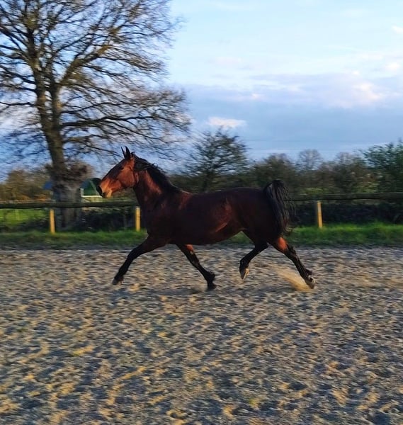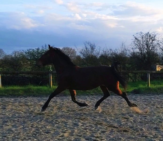 7-jährige Stute, sehr freundlich im Umgang, Bodenarbeit, Reiten (Reitplatz und Gelände), gezogen (Einzeln, Paar und Team). KWPN (Wallach) x Lusitanischer Abstammung. OC-Papiere. Turniererfahrung, sehr leicht im Freizeit- oder Turniereinsatz. Für alle Leistungsniveaus.