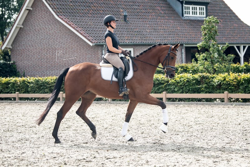 Onarijke, una yegua nacida en 2019, con 3 excelentes GGA. Actualmente presentada con éxito hasta la categoría L, aporta mucha calidad. Procedente de una de las mejores líneas de yeguas en los Países Bajos. Posee mucho carácter y, por ello, no es recomendable para jinetes débiles o temerosos. Para más información, no dudes en contactarnos por WhatsApp o por teléfono al 0049172-1743163. Ubicación: 5845 EJ Sint Anthonis