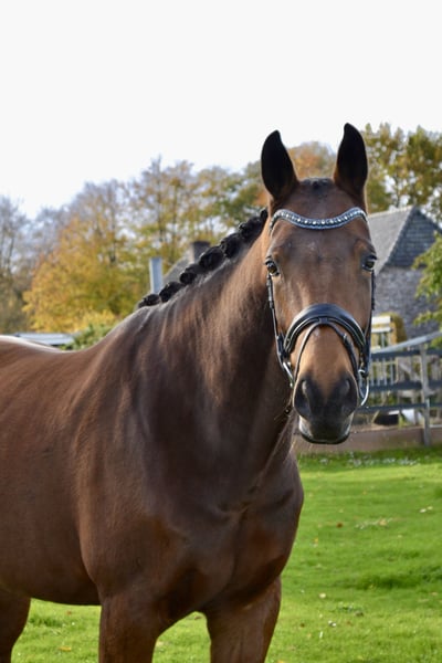 Direkt vom Züchter zu verkaufen: 7-jährige vorläufig gekörte Stute aus einer sport- und prestigeträchtigen Mutterlinie ⭐️ Navona ist eine Tochter des hochkarätigen Dressurhengstes Guardian S. Ihre Mutter Utah (v. Gribaldi) ist eine Halbschwester des Grand Prix-Pferdes Avanti (v. Tuschinski), das unter Elizabeth Ball mehrfach Top-Fünf-Platzierungen bei Weltcup-Qualifikationen erreichte. Die Großmutter von Navona brachte ebenfalls das Grand Prix-Pferd Esteban (v. Rousseau) sowie die L-Dressur-Pferde Corlando (v. Webster) und Fernando (v. Andretti) hervor. Außerdem stammt aus dieser Mutterlinie das Grand Prix-klassierte Pferd Armany (v. Jazz). Navona wurde im Alter von vier Jahren als Stern und vorläufig gekört. Sie brachte ein Fohlen von First Lewis zur Welt und war anschließend eine Zeit lang unter dem Sattel geritten. Navona zeigt sich unter dem Reiter weder scharf noch sensibel, kann aber gelegentlich anhalten oder umdrehen. Daher ist sie nicht geeignet für unerfahrene oder Anfängerreiter. Bei ihrem vorherigen Reiter wurde sie viel auf Ausritten eingesetzt, das haben wir mit ihr jedoch nicht gemacht. Sie wird von uns nicht vorgeritten! Im Alter von 2,5 Jahren wurde Navona gekört, die Röntgenaufnahmen sind vorhanden. Sie misst 1,70 m. Sie ist umgänglich und hat keine Stallgebrechen. Für den Züchter ist es wichtig, dass Navona an einem guten Platz landet. Sie passt zu jemandem, der es als schöne Herausforderung sieht, mit dieser Stute zu arbeiten und/oder ein Fohlen mit ihr zu ziehen. Dies ist eine tolle Gelegenheit, eine qualitativ hochwertige Stute in der normalen Preisklasse zu erwerben. Für weitere Informationen oder Videos: telefonisch oder per WhatsApp unter 0031683050314.