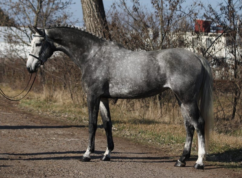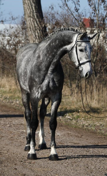 Caballo de doma clásica, potro de 170 cm de alzada, con excelente linaje. Kazar nació en 2017 y fue iniciado en la equitación a los 3 años. Actualmente, es muy seguro y adecuado también para jóvenes y niños que disfrutan del salto. Es muy fácil de montar y ya ha participado en concursos de salto con obstáculos, logrando recorridos hasta 130 cm. Kazar vive en paddock, está familiarizado con manadas mixtas, también sale solo a campo y está acostumbrado a tratar con niños. En su manejo es sencillo y no muestra dominancia. Sus cascos son de muy buena calidad, por lo que actualmente no lleva herraduras. Nuestro Kazar también conoce perros, gatos, etc. Está sano, ha sido examinado por el veterinario y no presenta comportamientos problemáticos. Videos disponibles, preferiblemente por WhatsApp: +36 30 892 25 57. El transporte a nivel europeo o a otros continentes (América, etc.) no es un problema para nosotros. El precio incluye el transporte en un radio de 1500 km.