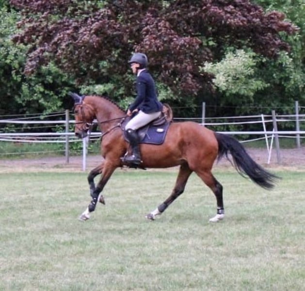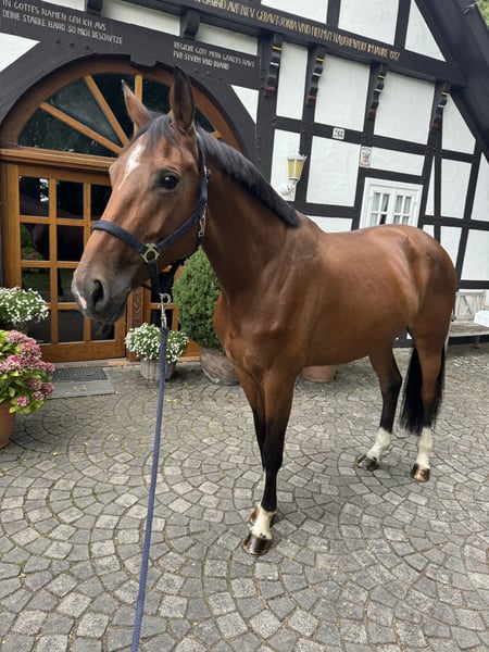 For sale is my 7-year-old mare Olympia Donna – a true heart horse. She is sired by Balou de Rouet × Michael, approximately 16.1 hh tall, and impresses with her rideability, lightness, and an exceptionally gentle nature. She has already proven herself in sport: - L-Show Jumping: 2nd place - A**-Show Jumping: won - E-Dressage: won Olympia always works honestly, aims to please her rider, and confidently carries her through courses, the arena, and cross-country. She is loading and farrier-friendly, has no bad habits, and is an absolute treasure both in handling and under saddle. Lovingly called Lumpi by us, she is loyal and affectionate with everyone. I wish for her a caring home where she can continue to be supported and appreciated. Interested? Please contact us at 017622099284 🐎✨