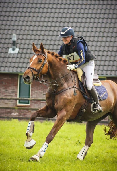 The perfect junior horse! Unfortunately, due to having to make some difficult choices, we are offering our sweetest mare for sale. Olivianne is a 6-year-old mare by Gemini XX x Zapatero VDL. We have trained her ourselves since she was 4, and we can say with certainty that she is the kindest horse ever. She is incredibly honest, always willing to work, very level-headed, and suitable for any rider. She always puts a smile on your face—she’s simply a joy to ride! Olivianne is competing at M1 dressage, 1.20m showjumping, and recently 2 eventing*. In the 1* she has been placed almost every time. She consistently scores 66%–72% in dressage, and she is very brave in the cross-country phase. You can ride her in all disciplines with a simple bit, without spurs; she is responsive to the leg and not spooky at all. She will always take her rider safely to the other side! She is also very suitable for the transition from pony to horse. She shows no “mare behaviour” whatsoever and is very social with both people and other horses. She recently passed a full vetting, including back and neck X-rays, and we have also recently had her tendons fully scanned—everything was completely clean. She is well-behaved for the farrier and vet, loads easily on both trailer and truck, and has no stable vices. A horse that will bring you an enormous amount of joy! For videos and more information, please send a WhatsApp message or call + 31 (0)6-13742234. Price indication: 55k+