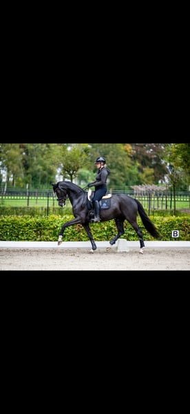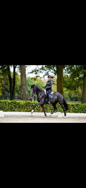 🩶 Sweet 8-year-old dressage mare by St. Schufro 🩶 Beautiful 8-year-old mare, approximately 1.65 m, with proven quality and great potential for higher-level work. She scored an impressive 77.5 points on the IBOP, demonstrating her natural talent and correct way of moving. The mare has had a few foals in the past and is now back in training, carefully progressing towards Z2 level (green changes). She is sensitive, with a lot of presence, yet very well-behaved and incredibly gentle to ride. Not spooky, easy to handle, and behaves very well on unfamiliar terrain and at different locations. A lovely mare for a rider who appreciates sensitivity and quality and wishes to further develop her in the sport. ✔️ Gentle and friendly character ✔️ Well-behaved despite her sensitivity ✔️ Easy to transport to different locations ✔️ Suitable for a competent amateur or professional rider From the same bloodline as L’ Amour Uva Gold (Grand Prix) and Furstenlooks Kallista (Small Tour) 📍 Located in the Netherlands 🇳🇱 🎥 Videos available upon request 🥕 Price: €30,000–€40,000