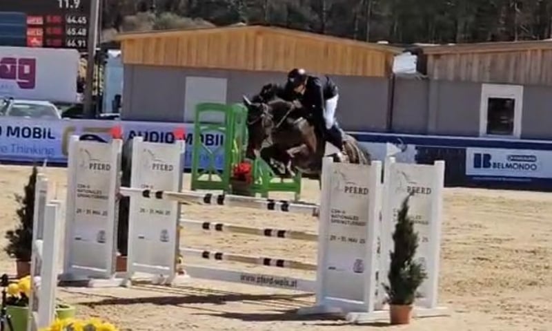 Rena es una yegua hermosa, muy cariñosa y simpática. La compramos en octubre de 2024 para nuestro hijo, quien, lamentablemente, ha crecido tanto que ahora mide más de 180 cm y es demasiado grande para ella. Hasta ahora ha montado 10 recorridos, de los cuales 9 fueron sin faltas; el único derribo fue simplemente por una mala monta y causado por el jinete. Rena también ha logrado un tercer puesto en una ronda rápida de 125. Como es muy sensible al montar (la montamos con una barra de goma muy suave), necesita un jinete que al menos esté equilibrado en la silla. Hasta ahora salta alto y cerca, nunca se ha negado a saltar. Tiene un temperamento muy agradable. Puede ser montada muy despacio, pero también a gran velocidad. Siempre espera pacientemente al jinete. Carga sola en el remolque y todavía anda descalza con nosotros...