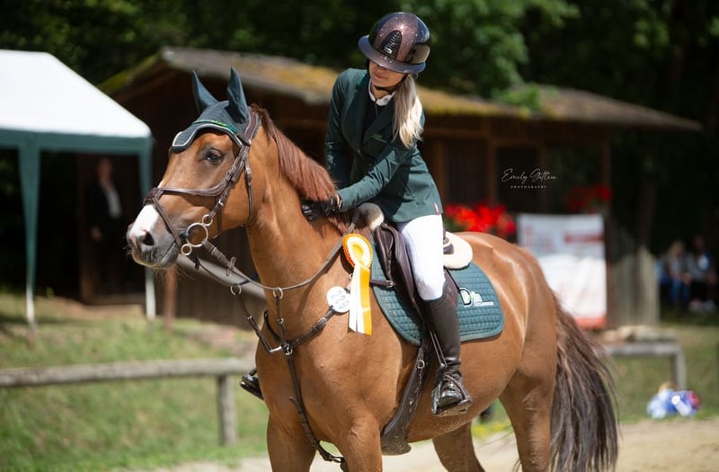 Kasztanowata klacz KWPN, urodzona w 2017 roku – odnosi sukcesy na poziomie L w skokach przez przeszk