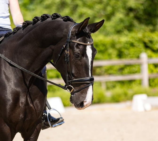 In vendita giumenta di quasi 8 anni. Disponibile esame RX completo. Giumenta coraggiosa con sufficiente energia, ma adatta anche per amatori. Conosce tutti gli esercizi fino al livello 4, esegue cambi di galoppo confermati, ha un galoppo molto forte e dispone di un buon trotto e passo. Cavallo flessibile e facile da montare. Adatto anche per cavalieri para-equestri. Ha già avuto un puledro a 4 anni, quindi non è sovra-allenata. Brava con il maniscalco, durante il trasporto e con il veterinario, non è una giumenta dominante o acida.