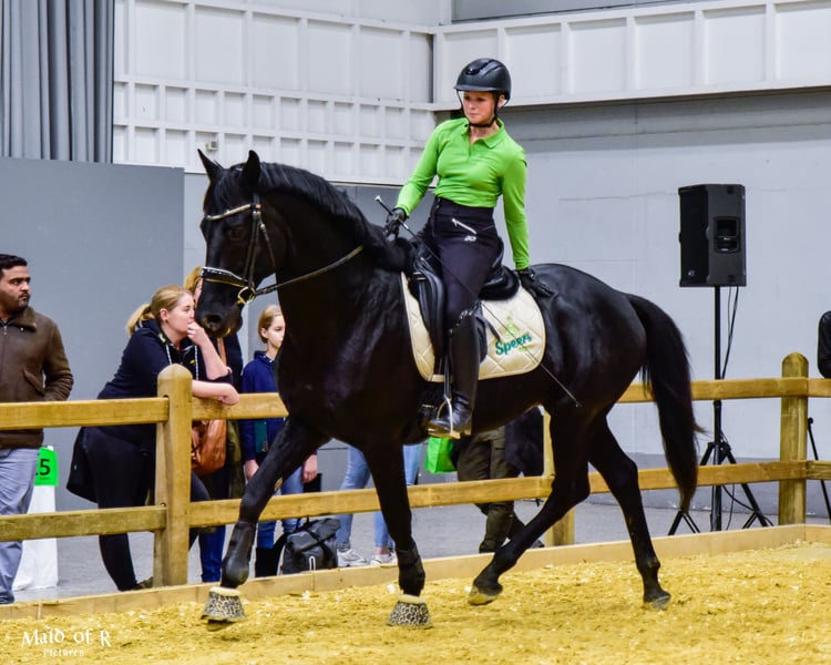 Wegen Aufgabe des Reitsports verkaufe ich meinen 2012 geborenen Rapphengst von Johnson (KWPN) aus einer Kostolany (Trakehner) Mutter. Er verfügt über einen raumgreifenden Schritt und schwungvollen, bequemen Trab und Galopp. L-Lektionen, Freispringen, Gelände (alleine und in der Gruppe), Wasser, Messeauftritte, Working Equitation Trailhindernisse und Areit am Rind kennt er. Er zeigt sich absolut gelassen, vertrauensvoll und hat eine positive Arbeitseinstellung. Auch in Stallzelten, unbekannten Situationen, Anwesehnheit von Stuten bleibt er immer einfach handlebar. Bei mir steht er neben Stuten mit Fohlen auf der Weide und verträgt sich mit Wallachen. Ich sehe ihn in der Dressur, Vielseitigkeit oder Working Equitation. Gesprungen wurde er unter dem Sattel nicht, zeigt aber Talent beim Freispringen und auf Geländestrecken. Aus Zeitmangel ist er aktuell wenig im Training. Für das Probereiten berechne ich 50€.
