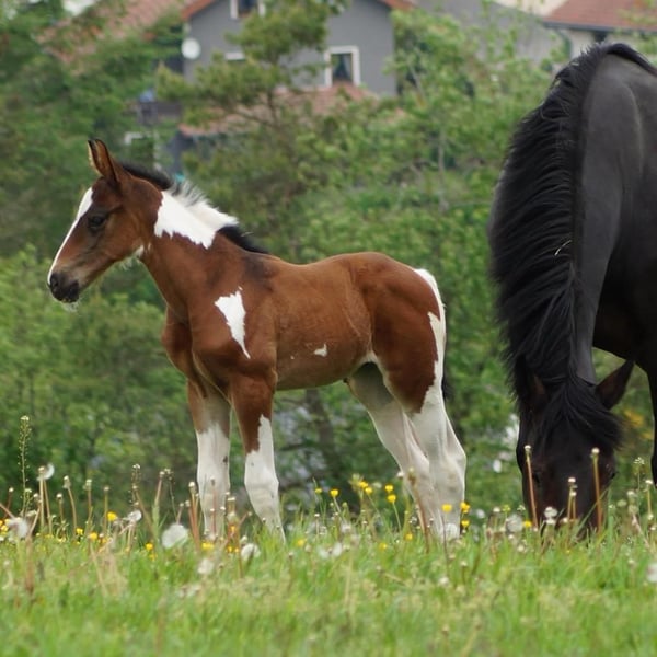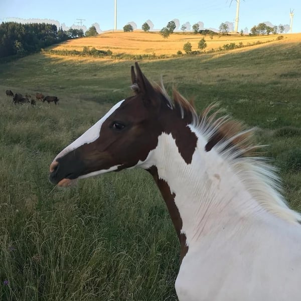Bonanza, also known as Fullcolour van Nethe, A truly trendy color! Bonny is the only splash-registered stallion by the century-winning sire Baloubet du Rouet out of a Samico mare. He passes on the gene 50% of the time but has already sired many splash foals. He possesses an exceptional temperament, which he also passes on to his offspring. In handling, he is more like a gelding. He has covered mares in Hungary for several years, where he was very popular and sought-after. Here, too, it is rare to find offspring for sale, as they are so well-behaved, willing to work, and easy to ride. Our first foal crop was very promising, and last year he covered about 20 mares naturally. He is not particularly tall himself but tends to pass on average to tall size. Bonanza completed his HLP in 2014 in Neustadt/Dosse with a dressage-oriented final score of 8.03. He himself was up to S level and remained fit and super well-behaved to ride right up until the end. Over the past 1.5 years, we have only used him for breeding. I could also imagine him as an excellent schoolmaster in a state stud, alongside his breeding duties. Most recently, he covered mares naturally here, but he is also familiar with artificial insemination using a phantom. He covers very calmly at the stallion chain and is rather shy. Please contact via WhatsApp or call us. Numerous videos of him can be found online under his name. We will only sell him if everything fits and the asking price is paid!
