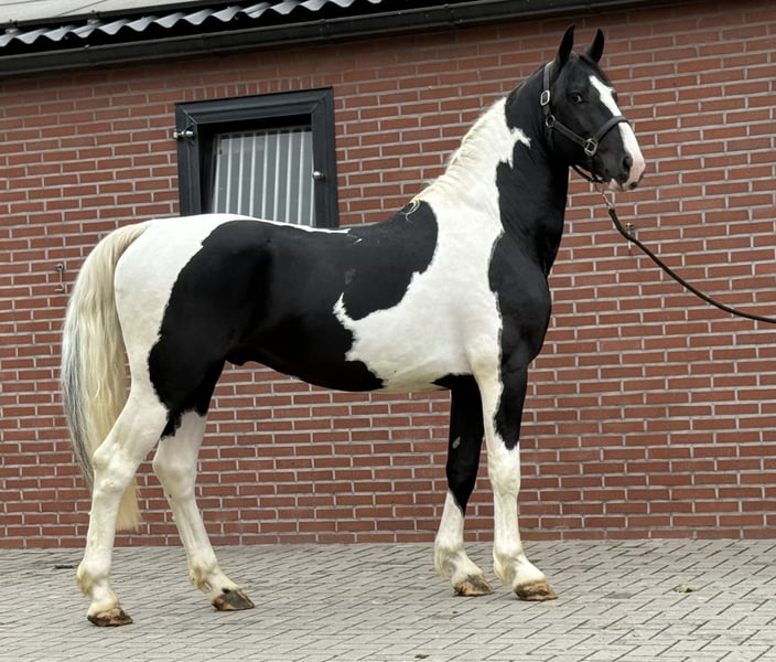 Auffallend schöner 3,5-jähriger schwarz-weißer Hengst. Er ist super schön platt gezeichnet. Er ist ein echter Showstar. Mit viel Präsenz und einer super Beintechnik läuft er durch die Bahn. Verfügt über ein vollständiges KWPN-Papier. Bei Interesse bitte anrufen oder eine Nachricht senden: +31643197337