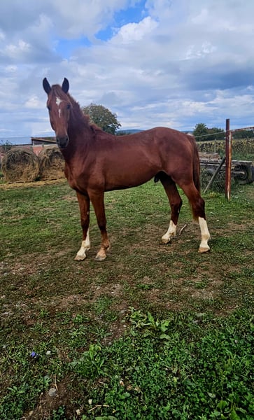 For sale: Young KWPN Stallion Foaled: 28 February 2023 Price: €4,000 Location: Croatia A young KWPN stallion, living harmoniously in a herd with mares. He can be bred harem-style or handled from the hand. He is very calm, has basic Natural Horsemanship training, and has been driven a few times in pair. He is eager to learn, enjoys training, and shows great respect towards his trainer. Part exchange possible: interested in a marathon carriage for a pair or a KWPN Tuigpaard colt, bay (brown) with white legs.