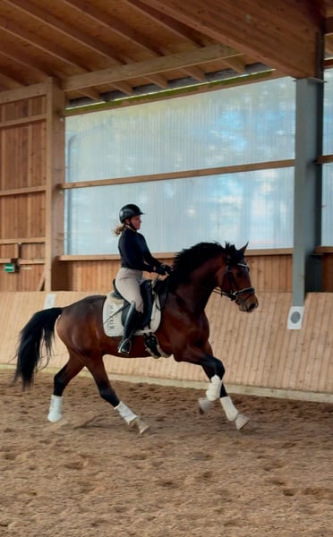Dieser vielversprechende 3-jährige KWPN-Hengst mit TOP Charakter präsentiert sich als herausragender Youngster mit besten Anlagen für den gehobenen Sport im großen Viereck. Absolut nicht hengstig mit besten Manieren. Der braune Sohn des Expectation aus einer Toto Jr-Mutter – und damit aus dem ersten Jahrgang des Expectation – überzeugt bereits jetzt mit seiner großzügigen Größe von 1,70m, seinem typvollen, sehr hübschen Exterieur und einer für sein Alter außergewöhnlich weit entwickelten Gesamterscheinung. Der Hengst entstammt einem leistungsstarken, sporterfolgreichen Mutterstamm, was seine Perspektive für eine spätere Karriere im Dressursport zusätzlich unterstreicht. Drei durchweg sehr gute, ausdrucksstarke, taktreine und dynamische Grundgangarten runden sein Gesamtbild ab und lassen keinerlei Wünsche hinsichtlich seiner Bewegungsqualität offen. Auch gesundheitlich bietet er sehr gute Voraussetzungen: Ein aktueller klinischer und röntgenologischer TÜV liegt ohne große Auffälligkeiten vor. In der täglichen Arbeit zeigt er sich altersgemäß gefördert, wurde sorgfältig und korrekt anlongiert und meistert nun seine ersten Ritte in allen drei Gangarten frei unter dem Reiter. Er überzeugt dabei durchweg mit seinem absolut einwandfreien Charakter. Ein Jungpferd, das einfach Spaß macht. Er ist außergewöhnlich artig im Umgang, stets freundlich und gelassen und benimmt sich sowohl beim Schmied als auch beim Tierarzt vorbildlich. Ein junger Hengst mit exzellenter Abstammung, hervorragender Bewegungsqualität und bestem Interieur – ein echter Nachwuchssportler mit Zukunftspotenzial. Selbstverständlich kann er bei Bedarf auch bei uns gelegt und weiter ausgebildet werden. Wir suchen für diesen tollen Junghengst ein förderndes Zuhause in besten Händen. Wir freuen uns über nette Anfragen und können dann gerne einen Termin zum Kennenlernen vereinbaren. Mehr Informationen und Videos gerne auch via WhatsApp oder telefonisch unter +49 173 7359633