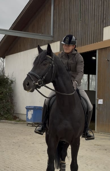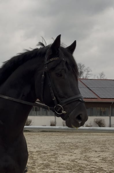 Am Turnier auf DPA-Niveau vorgestellt, Noten bis 9,0! Kann aber schon deutlich mehr: macht Seitengänge, sehr versammlungsbereit, fliegende Wechsel und Pirouetten angefangen und Passage/ Piaffe fallen ihm unglaublich leicht, fast so, als hätte er es schon immer gekonnt. Im Umgang und unter dem Sattel ist er ein absoluter Verlasspartner – super einfach zu reiten, immer konzentriert und niemals mit Unarten. Seine Lernfreude ist beeindruckend; selten hatten wir ein so schnell verständiges und motiviertes junges Pferd im Training. Für uns ist er ein klarer Kandidat für den Weg bis ganz nach oben – ein zukünftiges Grand-Prix-Pferd mit außergewöhnlichem Potenzial.