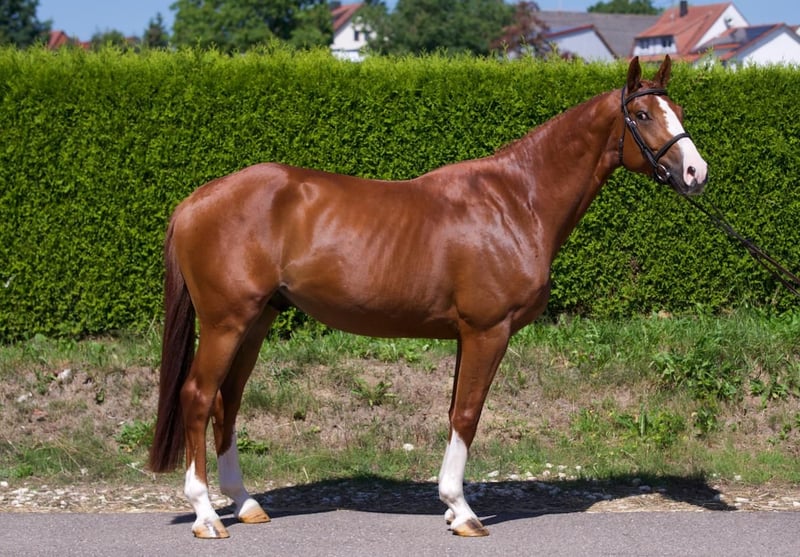 Stunningly beautiful stallion with exceptional jumping quality, good movements, and excellent riding comfort. Successful in young horses classes