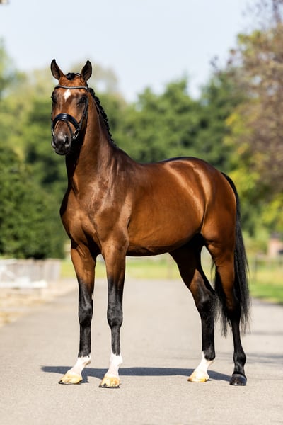 Presentiamo Romario, un stallone da dressage del 2021 Incontra Romario, un giovane stallone straordinario nato a giugno 2021, che combina linee di sangue eccezionali con un'inclinazione naturale per il dressage. Nato dal rinomato Bonds e da una fattrice Westpoint, Romario porta con sé un'eredità di eccellenza in ogni passo. Questo cavallo talentuoso è desideroso di lavorare e dimostra progressi notevoli ad ogni lezione di addestramento. Con il suo carattere dolce e disponibile e la sua rapida capacità di apprendimento, Romario mostra un grande potenziale per eccellere ai massimi livelli del dressage. Una vera gemma, è un perfetto equilibrio di eleganza, atletismo e un temperamento desideroso di compiacere. Romario è pronto per intraprendere una carriera promettente e siamo entusiasti di vedere il suo continuo sviluppo!