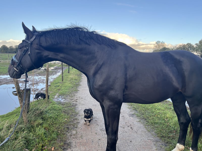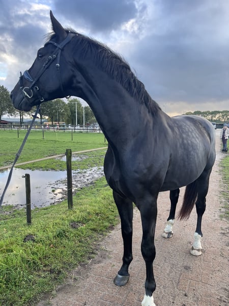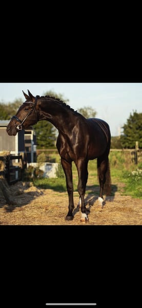 Red Bull, een paard met kwaliteit voor het hogere werk in de toekomst. Met zijn mega gave en knappe uitstraling valt hij altijd op. Groot, hengst maar zo’n klein hartje dat is hoe ik mijn Red bull omschrijf. Het is voor mij iedere keer een genot om met hem te mogen rijden, soms wisselen we de trainingen af met een sprongetje waar hij ook totaal van niks bang is, longeren en spelen in de bak, of grondwerk waar hij echt van kan genieten. Afwisseling doet hem goed. Hij heeft 3 zeer goede gangen. Red bull heeft zichzelf ontwikkeld als 4-jarige grote hengst met een stokmaat van 1.80m. Paard met een topkarakter en veel werklust. Hij laat zich fijn bewerken en pakt het werk iedere dag goed aan. Wij zijn zo ook voor de fun de vliegende wissels aan het oefenen, en iedere keer dat ik met hem train gaat hij een stapje vooruit in alles wat hij doet. En dat geeft een heel gaaf gevoel! Ondanks zijn leeftijd is Red Bull nuchter en betrouwbaar, raar maar waar ( schrikt nooit). Ik kan er een ervaren als minder ervaren ruiters op laten rijden. Toont geen hengstengedrag en staat probleemloos tussen de merries op stal. Volledig klinisch en röntgenologisch goedgekeurd, inclusief rug en hals. Kenmerken: makkelijk te rijden, betrouwbaar, werkwillig, talentvol paard. Red Bull is klaar om verder opgeleid te worden bij zijn volgende ruiter. 📞 Voor meer informatie: neem contact op 0681802919 ⭐️paard valt in de hogere prijsklasse⭐️