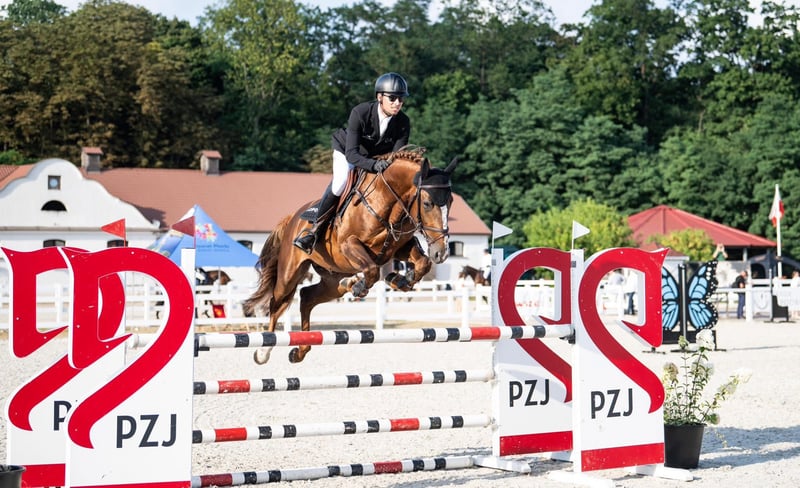 PROPER (KWPN) Hengst, geboren 2020, Stockmaß 169 cm Zuchtruf PROPER ist ein Sohn des phänomenalen Tangelo van de Zuuthoeve (BWP) – ein 1,60 m großer Hengst, der über Jahre hinweg zur Weltspitze zählte und zahlreiche Grand Prix-Pferde hervorgebracht hat. Tangelo van de Zuuthoeve ist bekannt für seine immense Kraft, seine makellose Technik und sein hervorragendes Temperament. Die Mutter von PROPER ist Lexandria (KWPN) von dem legendären Kannan GFE – einem der einflussreichsten Vererber der modernen Zucht, Vater von Olympiapferden und Weltmeistern. Die Mutterlinie führt zurück auf die bewährte Stute Amalia VDL (Quaprice Bois Margot x Galoubet A), die aus einer Familie stammt, die seit Generationen Pferde auf 1,45–1,60 m Niveau hervorbringt. Sportliche Laufbahn Bereits im Alter von fünf Jahren bewies PROPER seine außergewöhnliche Klasse. Bei den Polnischen Nachwuchschampionaten in Olsza (2025) beeindruckte er mit großem Mut und Selbstvertrauen. Er absolvierte den anspruchsvollen Finalkurs der Fünfjährigen fehlerfrei und bestätigte damit sein bemerkenswertes sportliches Potenzial. Zuchtqualitäten PROPER vereint die besten Eigenschaften seiner herausragenden Abstammung: * Kraft und Technik von Tangelo van de Zuuthoeve, * Ausdauer und Sportlichkeit von Kannan GFE, * eine bewährte Mutterlinie mit Pferden bis 1,45–1,60 m, * modernen Sportpferdetyp – elegante Konformation, exzellente Bewegungsqualität und ausgeglichenes Wesen. Mutterlinie Die weibliche Linie von PROPER ist reich an erfolgreichen Sportpferden: * Hillstone JWB (Arezzo VDL) – Springen bis 1,45 m, * Ismalia JWB (Everglade VDL) – Springen bis 1,45 m, * Jumping Star JWB (Etoulon VDL) – CCI3*-S, * sowie viele weitere Pferde, die bis 1,40–1,45 m erfolgreich turnieren. Diese Linie stammt von der legendären Forever d’Ogier (Galoubet A x Laudanum XX) ab – eine der besten Töchter von Galoubet A, die einen enormen Einfluss auf die moderne Springzucht hat. Fazit PROPER ist ein junger Hengst mit einem weltklasse Pedigree und bereits bewiesener sportlicher Leistungsfähigkeit. Als Sohn von Tangelo van de Zuuthoeve und Enkel von Kannan vereint er Mut, Elastizität, enorme Kraft und einen ausgeprägten Geist. Sein erfolgreicher Auftritt bei den Polnischen Nachwuchschampionaten in Olsza zeigt, dass er nicht nur aus einer außergewöhnlichen Blutlinie stammt, sondern auch ein großes Herz für den Sport besitzt. PROPER verfügt über alle Qualitäten, um zu einem Pferd von internationalem Format zu reifen – sowohl im Sport als auch in der Zucht.