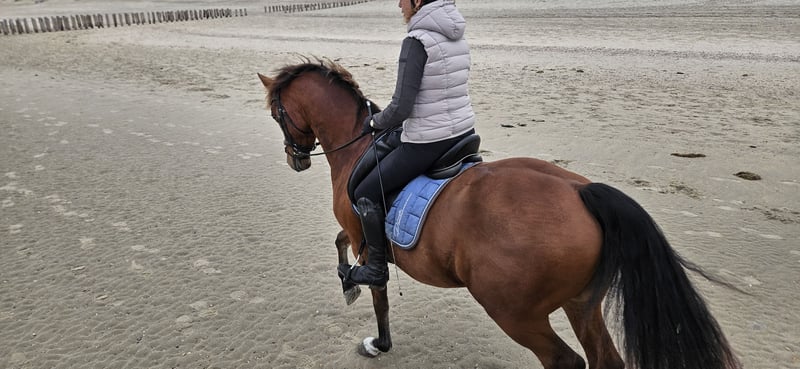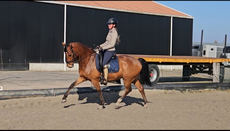 Lovely Desmo, 9-year-old gelding Alexandro P x Mister Concorde b.j. I am looking for a new owner for my home-bred 9-year-old gelding. Desmo is a very striking gelding with a sweet and mischievous character who loves attention and is looking for someone who wants to engage in versatile work with him. My ambition lies in dressage, but Desmo is not happy with just dressage. He has competition experience up to M level and knows the exercises of class Z. He is looking for more challenges in jumping, groundwork, and possibly eventing. Are you someone who is looking for a nice horse with character and are you interested in doing fun things with him? Please get in touch!