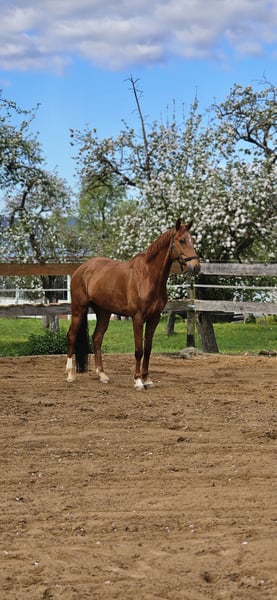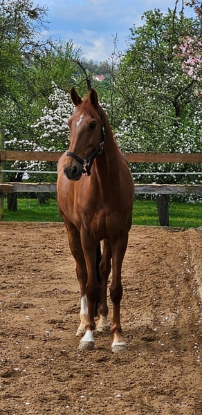 For sale is an exceptionally typy KWPN gelding, born in 2016. With his noble chestnut coat and a harmonious height of 16.1 hh, he turns heads both in the dressage arena and in everyday life. This talented dressage partner impresses with his balanced temperament, high learning ability, and excellent movement quality. He is solidly trained in all three disciplines. He has achieved scores and placings up to dressage class L and has also been placed multiple times in show jumping and eventing up to class A. He is well-suited for riders of all ages and can serve as a stepping stone into competitive sport. In daily handling, he is reliable, friendly, and always cooperative. He is farrier- and loading-friendly. He has been healthy so far and is ready to accompany and inspire his new owners both at home and in competitions. If you are interested or have any questions, I look forward to hearing from you. A personal viewing can be arranged by appointment. Tel. 0176 24832026.
