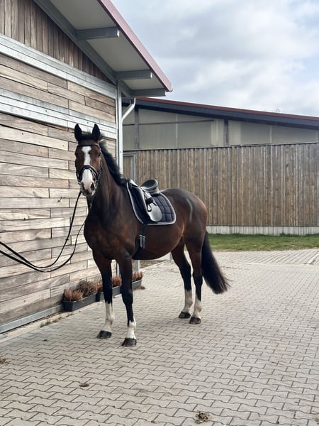 Loui 10-year-old gelding 16.1 hh Extremely well-behaved both on the ground and under saddle Easy to handle, even for children A-level dressage skills Enjoys free jumping and ground work As a young horse, competed in Jumping Horse Class A Accessories can be sold separately