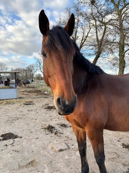 Aufgrund von Rückenproblemen und fehlendem sportlichen Ehrgeiz Robustes 9-jähriges Pferd, ca. 1,78 m groß. Er ist ausgebildet in L/M-Dressur, Springen bis 1,10 m, und Vielseitigkeit B/L. Nach 2023 habe ich ihn nicht mehr geritten. Sehr leicht zu laden, brav im Umgang mit dem Anhänger. Da ich verletzt bin, hat er in den letzten zwei Jahren sehr wenig gearbeitet. Daher habe ich keine Ambitionen mehr, viel zu reiten. Lugano hat vor etwa 2/3 Jahren noch intensiv im Sport aktiv teilgenommen, sowohl in Dressur, Springen als auch Vielseitigkeit. Es ist ein sehr angenehmes, aber auch herausforderndes Pferd zum Reiten, das sicherlich noch weiterkommen kann. Er war immer eine imposante Erscheinung in der Bahn, sowohl in der Dressur als auch im Springen. Ich habe viel auswärts geritten, was er ebenfalls brav gemacht hat. Er ist absolut kein Anfängerpferd und wird nur an einen erfahrenen Reiter verkauft. Im Umgang ist er sehr lieb, unter dem Sattel muss er jedoch noch an die Arbeit gewöhnt werden. Mit gegenseitigem Respekt tut er alles für seinen Reiter. Sein Charakter ist lieb, sensibel, aber auch dominant. Seit zwei Wochen ist er wieder unter dem Sattel, befindet sich aber noch nicht in Form.